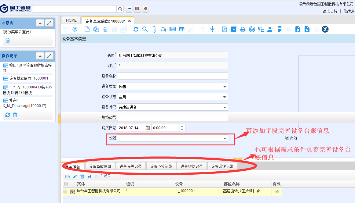 在設備管理系統(tǒng)的臺賬管理功能板塊中,首要的問題是進行設備固定資產登記。登記的數(shù)據(jù)多時就容易出現(xiàn)失誤,所以我們在建立數(shù)據(jù)庫結構時,必須給每一個字段定義正確的字段類型,宇段長度按使用要求給定。此外,設計表單時我們還可以通過設定控件屬性來監(jiān)控輸入,而且周到細致的考慮將會提高輸入的速度和準確率。
