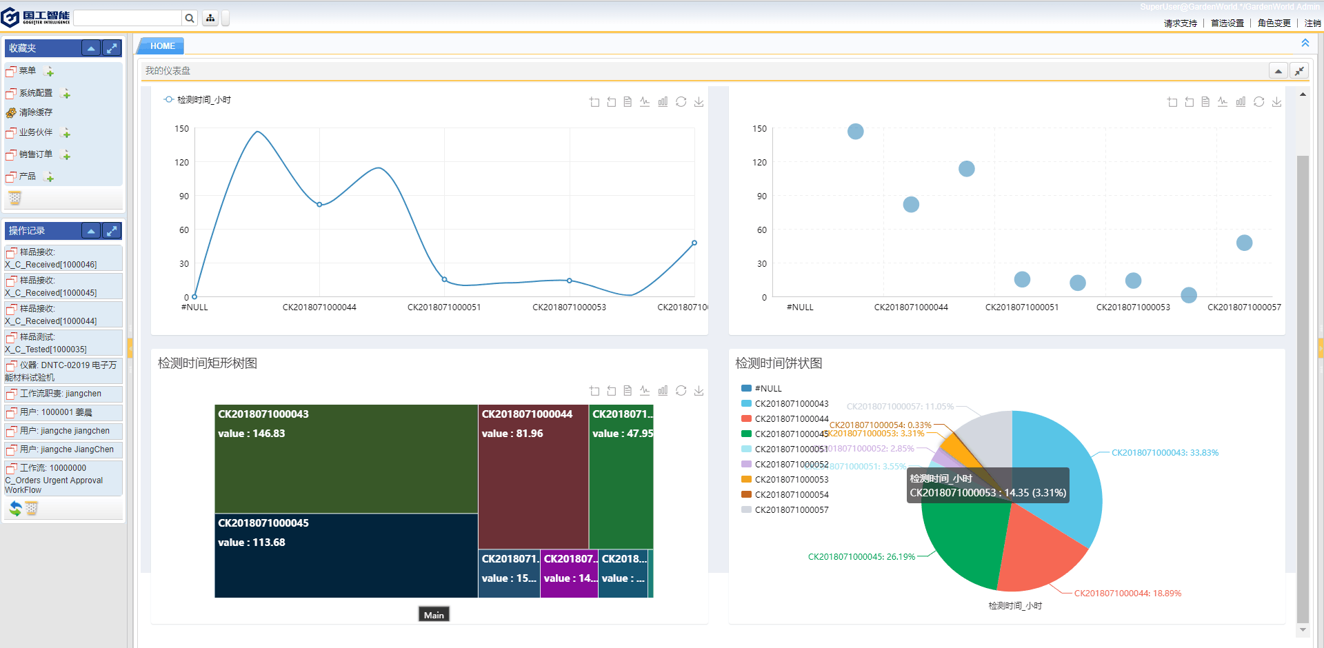 系統擁有OLAP(聯機分析)、QBE(自定義分析)、KPI(關鍵指標)分析、實時數據分析、駕駛艙關聯分析等數據分析功能。它可以將系統中的各種數據建立關聯關系, 例如可以自動對比天氣與質量的關系,設備故障與操作員的關系等等,在一個模塊進行數據合并分析,并能直接映射到管理者屏幕,幫助管理者梳理雜亂的生產數據。它以駕駛艙的形式進行展示,圖形所反映出企業中各種經濟指標的具體數據,這樣管理者就能夠更直觀、全面地了解到企業中所有指標的具體情況,從而方便快速地做出下一步決策。國工智能將BI與LIMS完美的融合在一起,使企業在從智能數字化管理中獲得更大的價值。