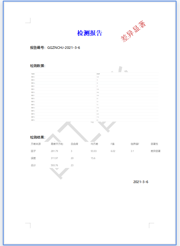 實(shí)驗(yàn)室系統(tǒng)中的單因素方差分析(one-way ANOVA)指對(duì)單因素試驗(yàn)結(jié)果進(jìn)行分析,是檢驗(yàn)單個(gè)因素對(duì)試驗(yàn)結(jié)果有無(wú)顯著性影響的方法,通過(guò)對(duì)兩個(gè)樣本平均數(shù)比較的引伸,檢驗(yàn)多個(gè)平均數(shù)之間的差異,從而確定因素對(duì)試驗(yàn)結(jié)果有無(wú)顯著性影響。也稱(chēng)為F檢驗(yàn),通過(guò)對(duì)數(shù)據(jù)變異的分析來(lái)推斷兩個(gè)或多個(gè)樣本均數(shù)所代表的總體均數(shù)是否有差別的一種統(tǒng)計(jì)推斷方法。簡(jiǎn)單的來(lái)說(shuō),就是用來(lái)檢驗(yàn)同一個(gè)影響因素的不同水平對(duì)因量是否有影響的一種方法。