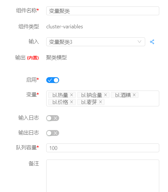 從數(shù)據(jù)大腦中的組件面板查找變量聚類組件,拖到到工作面板,配置數(shù)據(jù)源以及變量聚類組件參數(shù),點(diǎn)擊運(yùn)行。