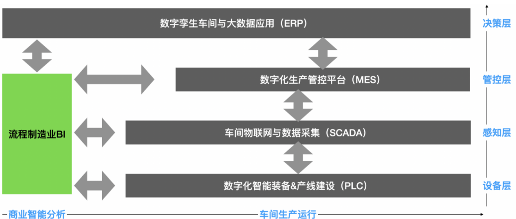 盡管流程制造業在自動化向數字化、智能化轉型過程中使用的系統或技術不斷更新迭代,但其與BI在數據存儲、處理、分析、可視化及預測上的融合并不明顯,圍繞生產過程使用的各個系統(如:PLC、SCADA、MES等)和標準化的數據應用產品(如:數據庫、ETL等)在面向流程制造業的使用過程中存在以下問題: