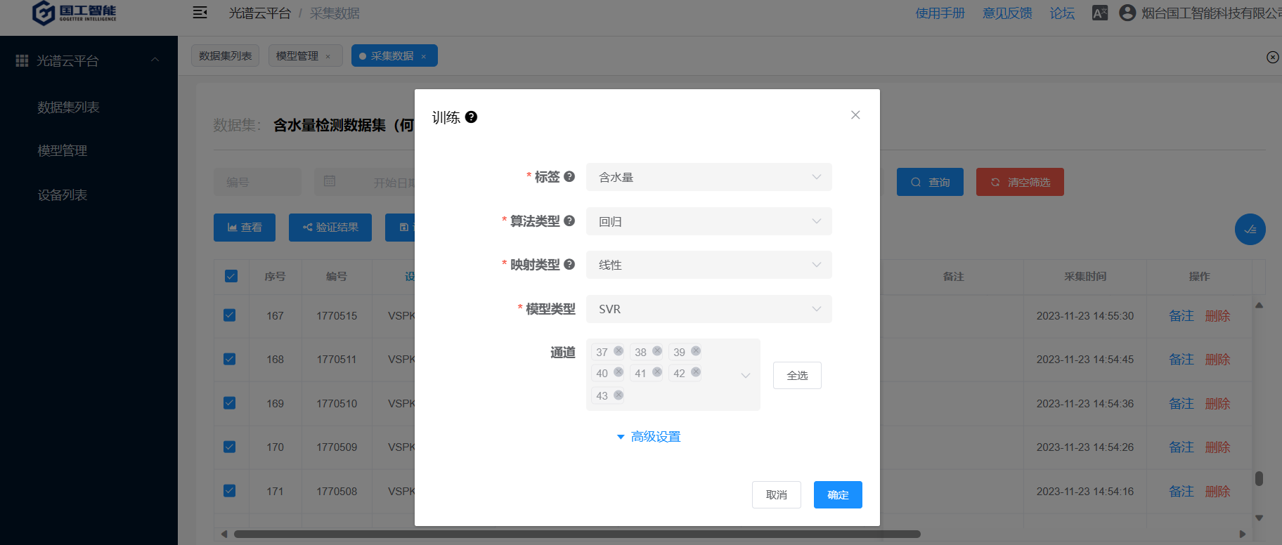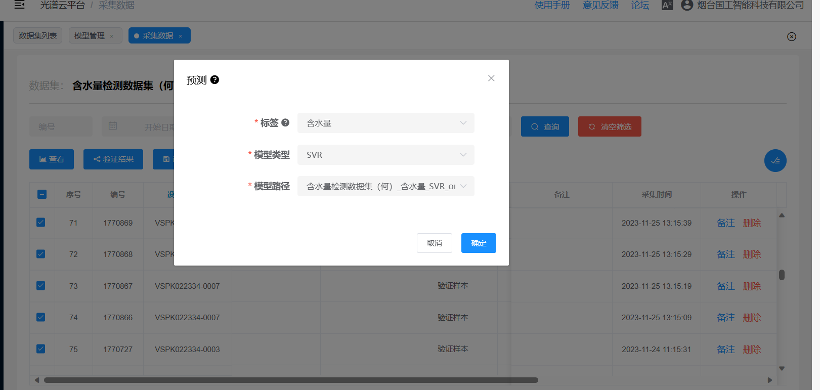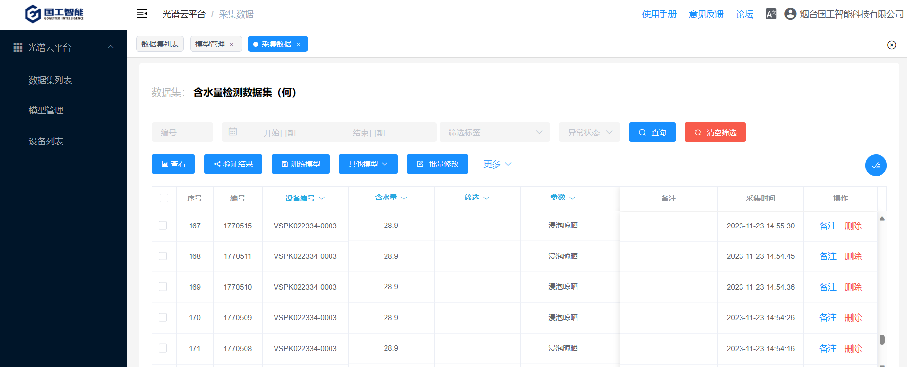 以光譜儀采集數據為前提,數據大腦平臺為依托,在線智能光譜檢測系統通過當前主流AI人工智能技術在線將采集到的大量數據機器學習、訓練模型,模型對生產材料進行在線檢測,檢測結果可以輔助生產過程的決策,在品質監控以及原料投放方面起到了重要作用。