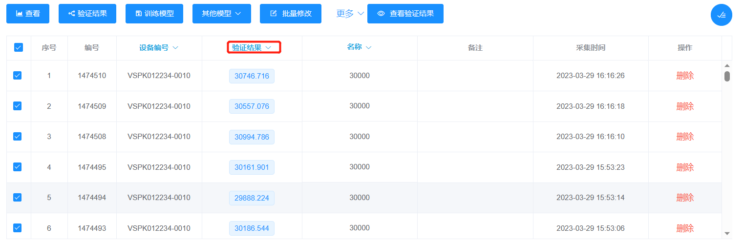 將所采集到的每組數據取10條進行查看分析,選取線性關系較為合適的通道使用線性回歸的方式進行訓練模型,模型訓練成功后,取全部數據進行檢驗,以30000ppm和20000ppm兩組數據檢測結果為例,如下圖: