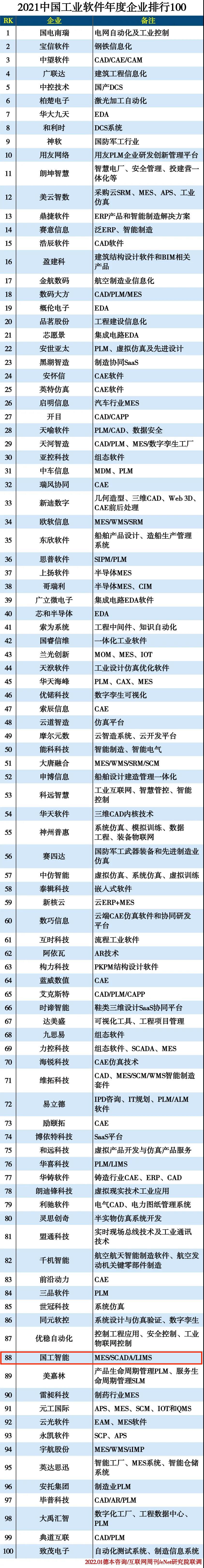 中國(guó)工業(yè)軟件企業(yè)100強(qiáng) | 國(guó)工智能位列第88名!