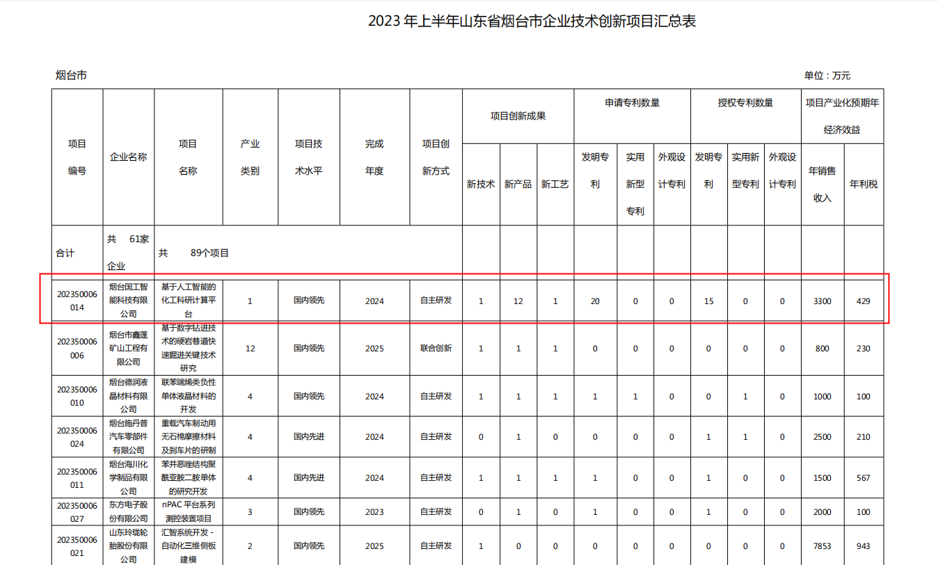 5月29日,山東省工信廳發(fā)布《山東省工業(yè)和信息化廳關(guān)于印發(fā)2023年山東省第一批技術(shù)創(chuàng)新項(xiàng)目計(jì)劃的通知》,國(guó)工智能“基于人工智能的化工科研計(jì)算平臺(tái)”入選此次創(chuàng)新項(xiàng)目計(jì)劃。